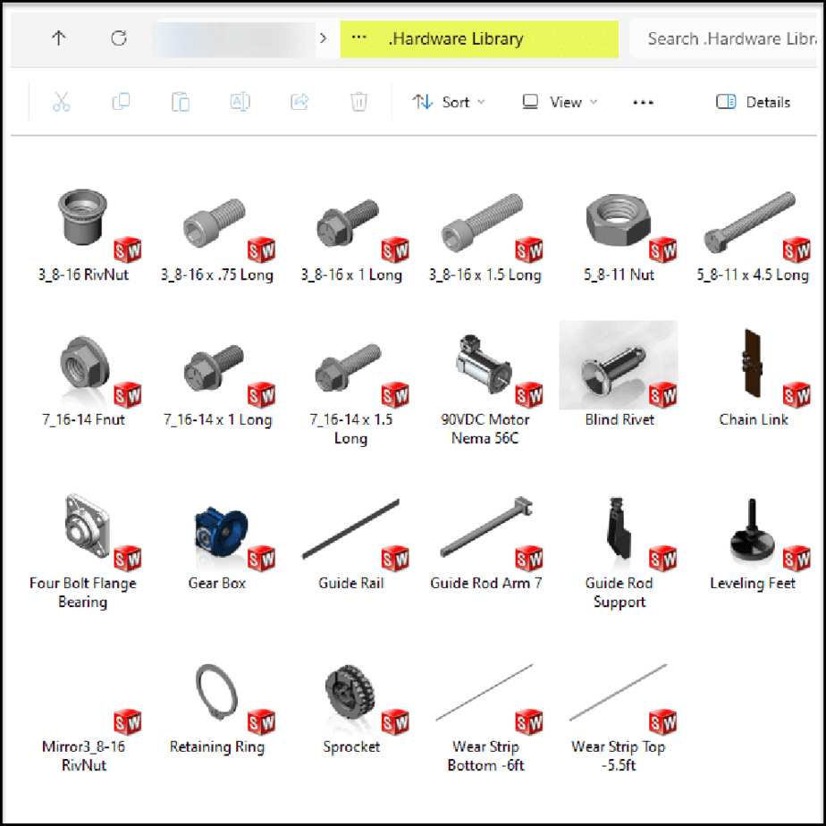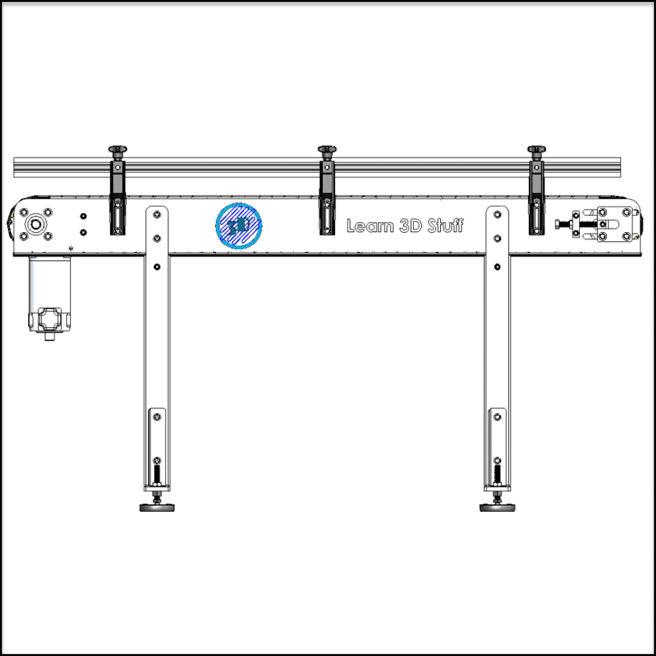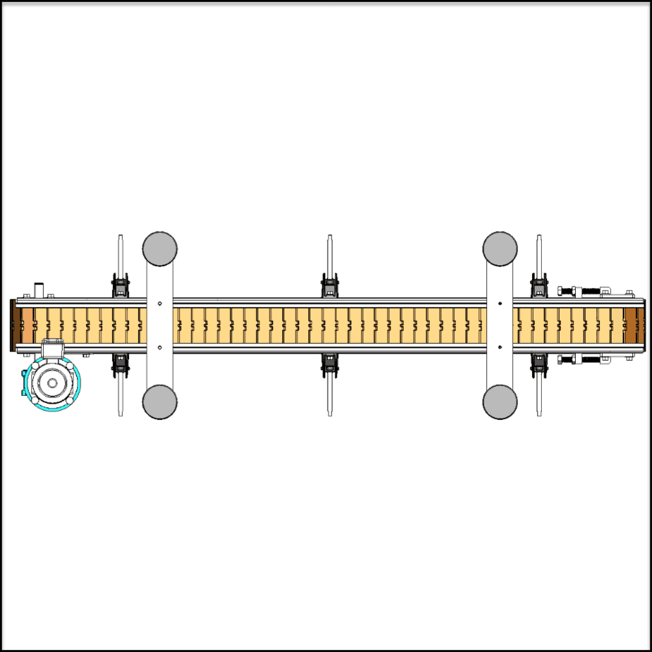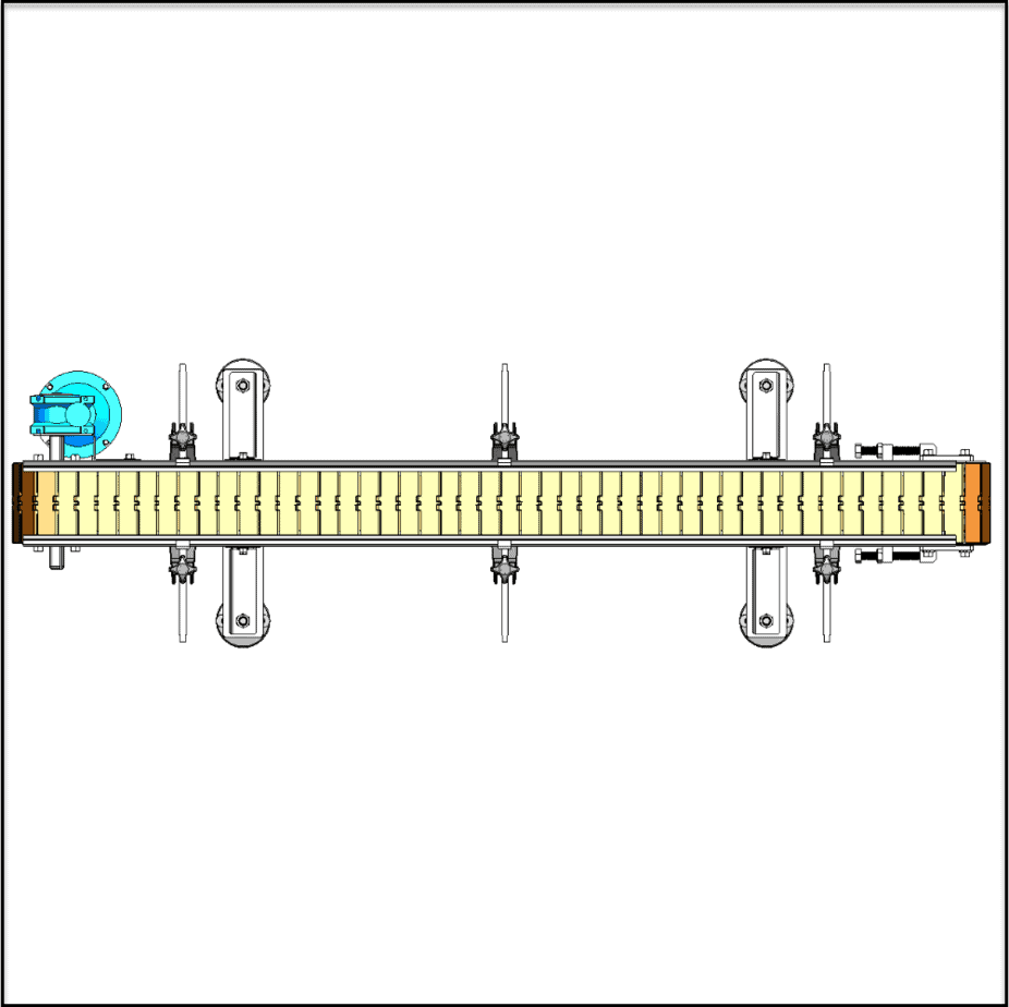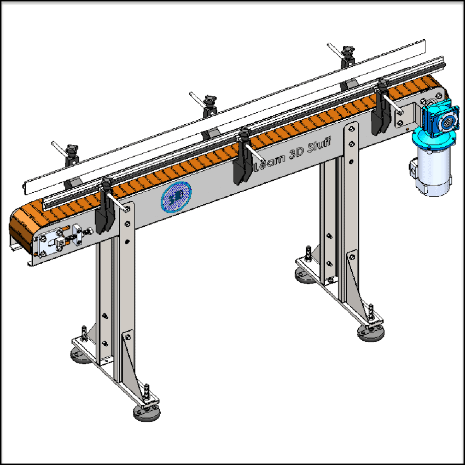 This Complete Slat Chain Belt Conveyor CAD Package include step files for all the components of the pictured CAD model below.
